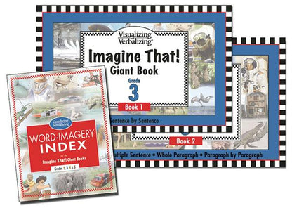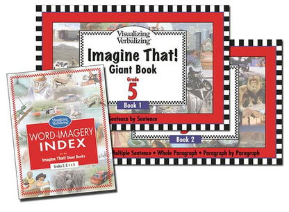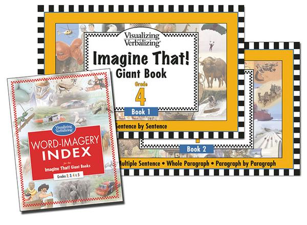 The graded Imagine That! Giant Books provide high-imagery stories and lessons for group and classroom practice at the Sentence by Sentence through Paragraph by Paragraph steps of the highly effective Visualizing and Verbalizing® program.