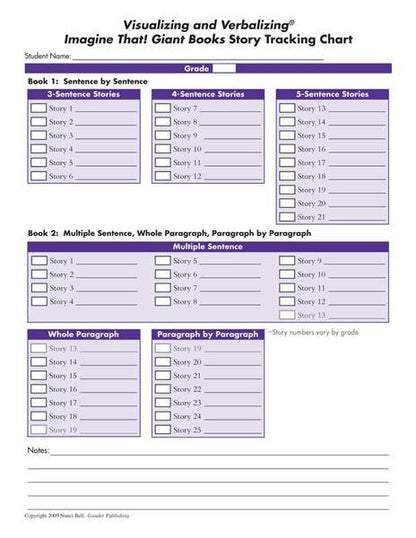 These charts make it easy to monitor and record student progress through the Imagine That! Giant Books.