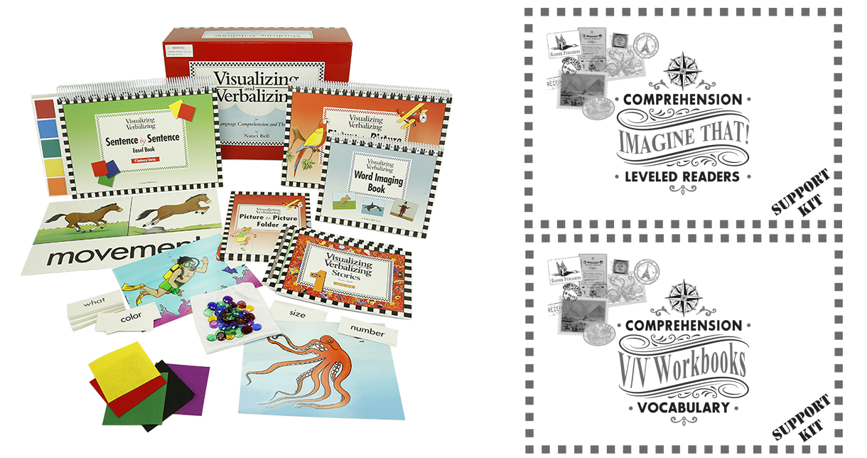 This incredible bundle features the Visualizing and Verbalizing® Kit, the Imagine That! Support Kit, and the V/V Workbooks Support Kit. You'll have everything you could need for one-to-one, small group, or classroom instruction. The V/V instructor's kit includes all of the materials you need to deliver each step of the Visualizing and Verbalizing program. Additionally, the two support kits include a wide range of supplemental resources and are ideal for teachers working with different grade and ability levels. The leveled readers and workbooks in the support kits allow you to differentiate instruction and provide the scaffolding needed for many struggling students. Buy this bundle and save.